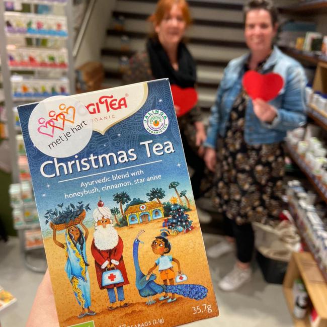 Met een leuk produkt, de overheerlijke Christmas tea, willen we deze aktie ondersteunen.