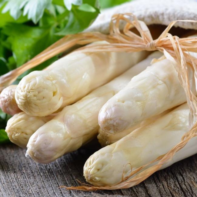 6. Blus af met een beetje citroensap en wat kookvocht van de asperges.